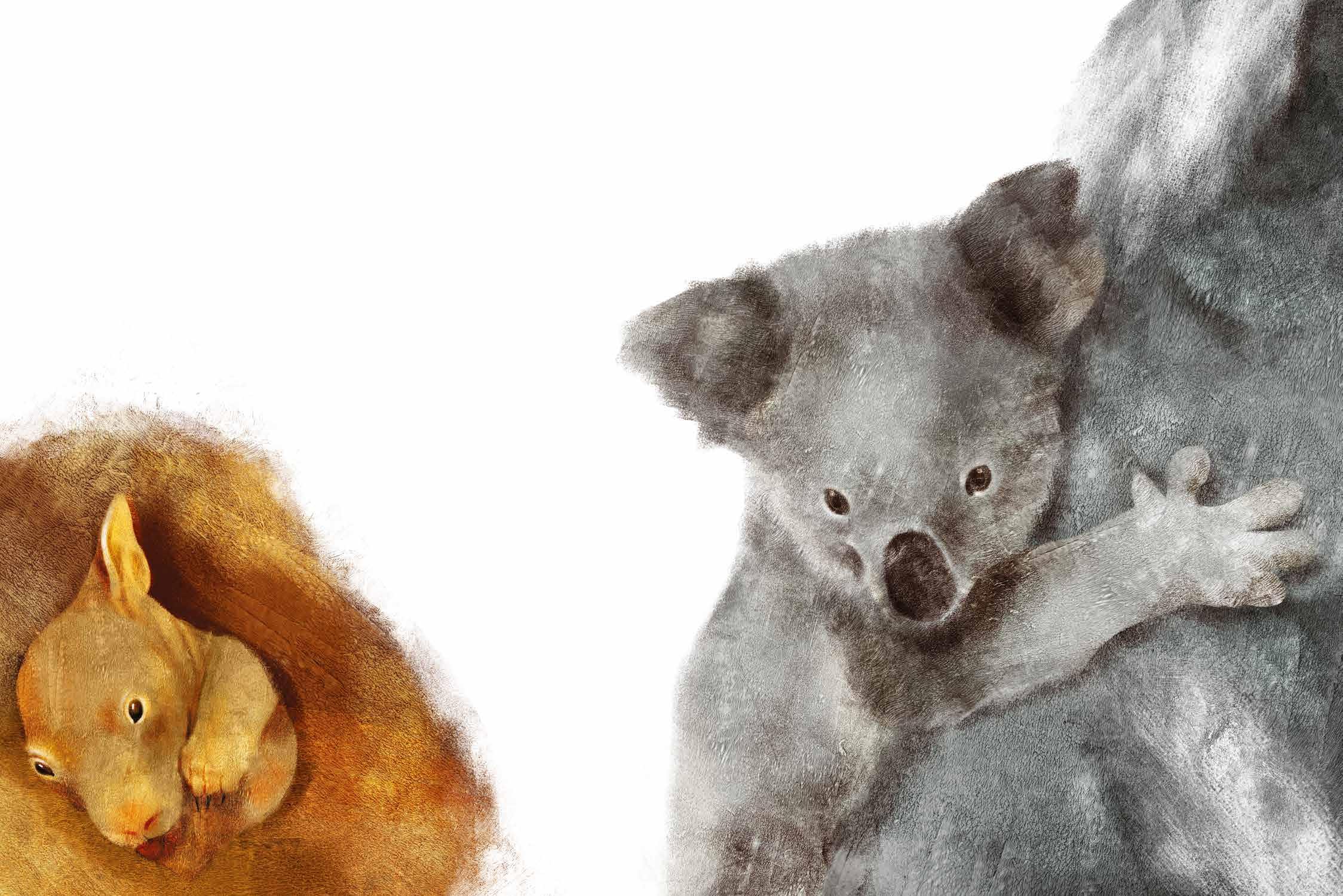 A big black nose in the middle of a round face, and big, hairy ears make the koala unmistakable. It is perfectly suited to its environment, the Australian eucalyptus forests. The koala is a marsupial, and its babies measure just 0.7 in (2 cm) at birth. They reach the pouch straight away and they stay there for 6 months, during which they develop. The babies then come out and hang onto their mother’s back. She will carry them with her through the evergreen leaves of the eucalyptus trees, where the koala bears move slowly. When necessary, though, they can run on all four legs along the ground. Their hands and feet are perfect for gripping onto the branches, but at the same time, they are the strangest in the world: koalas have two opposing thumbs and three fingers, whilst they have a very big toe and the second and third toes are joined together to look like one toe with two nails!