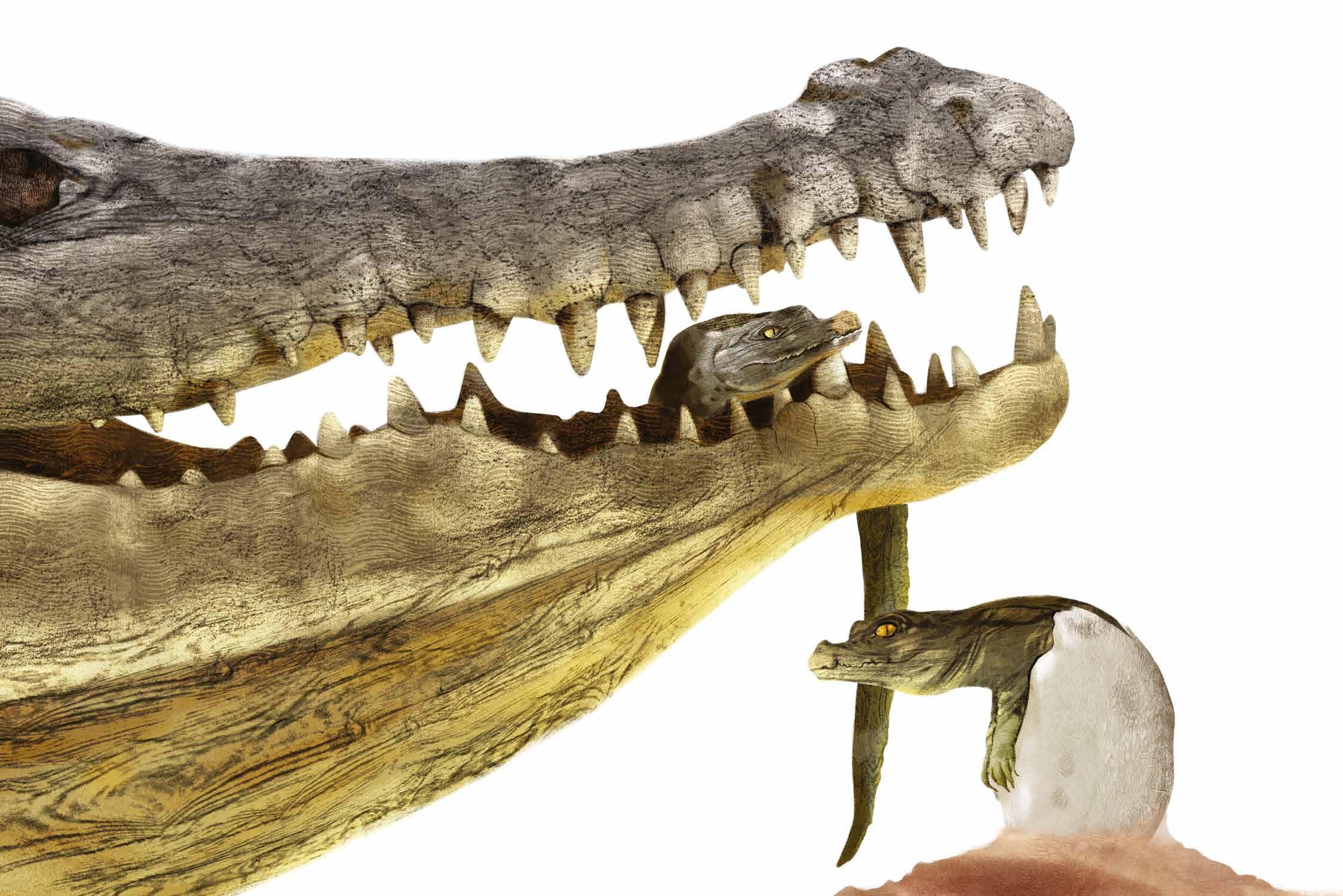 Don’t panic: this baby crocodile isn’t about to be eaten! The crocodile’s nest is a little mound of compact earth, about 6 ft (2 m) in diameter, where the female buries her eggs to protect them from predators.