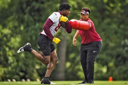 Prior to coming to Washington, DC, King coached in the Alliance of American Football, and in the college ranks, and she also has experience as a player. From 2006-17 – seven seasons – King was an all-American quarterback and wide receiver for the Carolina Phoenix women’s tackle football team.