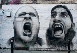 Street art is a wildly creative cosmos of humorous, political or poetic work that is constantly renewed. Some works are quickly ruined by tags and low-grade graffiti, then painted over within a few weeks. The painting on the right, juxtaposing a British ultranationalist with a Muslim preacher of hate, has already disappeared. Work by respected artists may stay untouched for a long time, or even be repaired by supporters if it is defaced. And if all of Shoreditch becomes chic, never mind: street art thrives in many parts of London.
