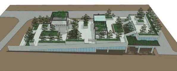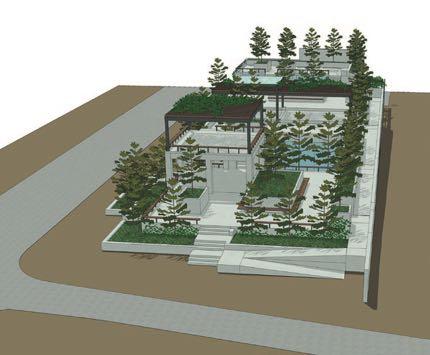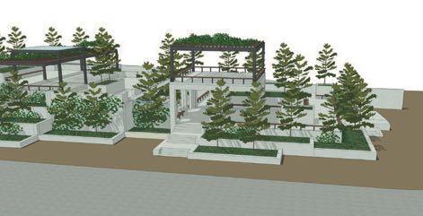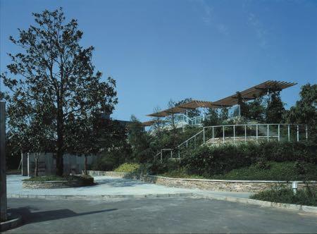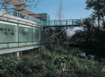 (下左)种植坛好像穿入建筑东面。