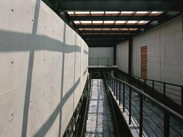 The big surprise comes when people enter the doorways. Looking east and west, they will find that few solid crossing partitions exist inside the “wall” between its two concrete shells. Various spaces—bright and dim, indoor and outdoor, high and low, orthogonal and diagonal—are juxtaposed along the longitudinal direction of the cavity.