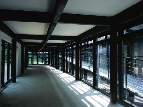 Varied interior space and the greenery beyond the east end of the building, as seen from the east doorway looking east.