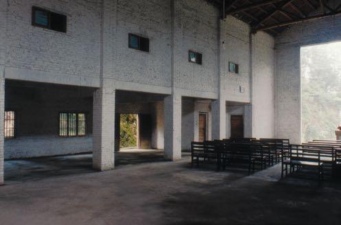 Interior of the church; second floor contains lodging rooms, with space under for communal dining.