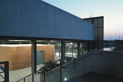 A visitor center is the front door of a place. But a door presumes the existence of a wall. Considering the linear site, it is appropriate to make the building a “wall.” Indeed, people entering the parking lot see a curved “wall,” 99 meters long and 7.75 meters high. Three doorways on the “wall” open up passages into the park. The sceneries revealed via the openings appear particularly enticing.