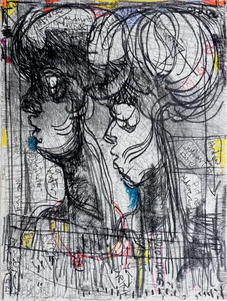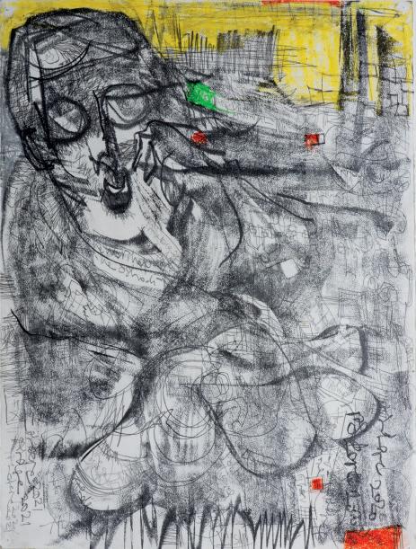 Graphite, charcoal, pastel, Conté on watercolor paper