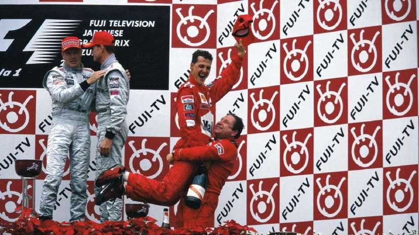 “Michael Schumacher’s greatest moment:The Japanese GP2000, when he finally won the world title for Ferrari…after a 21-year hiatus.”