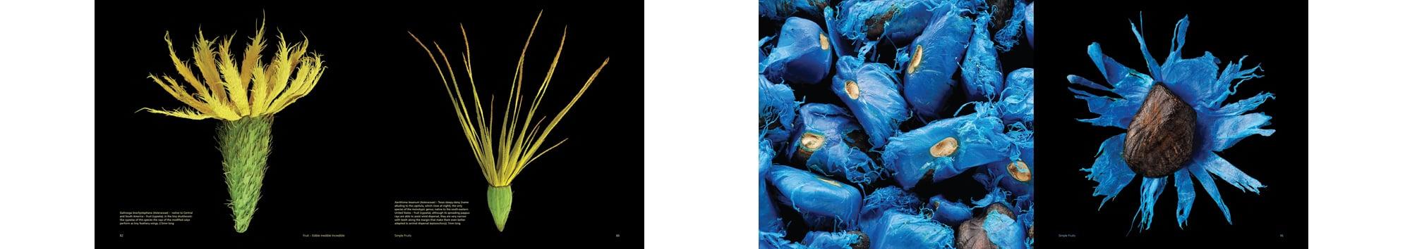 Fruit. The word itself conjures up mouthwatering memories of crunchy apples, luscious strawberries, sweet bananas, succulent melons and juicy pineapples, to which we can add the splendid tropical fruits on our supermarket shelves. They are one of nature s most wonderful gifts but providing us with a healthy source of food is not the reason that plants produce such delicious fruits. It is therefore quite legitimate to ask what fruits are, and why they exist. As will be revealed, the true nature of fruits is concealed in what is buried in their core: their seeds. The key role that both play in the survival of each species explains the manifold strategies and ruses that plants have developed for the dispersal of their seeds. Whether these involve wind, water, humans, animals or the plant s own explosive triggers, they are reflected in the many colours, shapes and sizes of the fruits that protect the seeds and in the extraordinary way that some fruits have adapted to the animals that disperse their seeds, and the animals to the fruits they relish. In this pioneering collaboration, visual artist Rob Kesseler and seed morphologist Wolfgang Stuppy use scanning electronmicroscopy to obtain astonishing images of a variety of fruits and the seeds they protect. Razor-sharp cross-sections reveal intricate interiors, nuts and other examples of botanical architecture and reproductive ingenuity. The black and white microscope images have been sumptuously coloured by Rob Kesseler highlighting the structure and functioning of the minuscule fruit and seeds some almost invisible to the naked eye and in so doing creating a work of art. Larger fruits, flowers and seeds have been especially photographed. The formation, development and demise of the fruits are described their vital role in the preservation of the biodiversity of our planet explained. Fruits are the keepers of the precious seeds that ensure our future; some are edible, others inedible and many, quite simply, incredible.