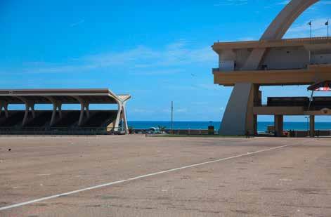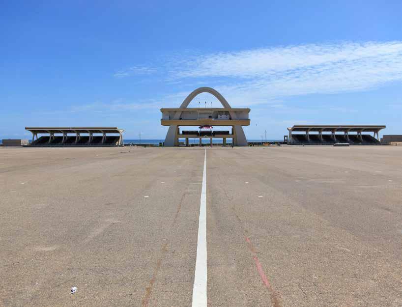 square are not certain. Its perimeter was determined when the site was quite empty and, in the original images as late as 1965, Independence Arch, holding the presidential box and Black Star Arch, are the only visible constructions in a wide plain adjoining the sea. But one can assume that the monumentality of such a space pointed to Kwame Nkrumah’s broader aspirations for Ghana as leader in the independence movement within Africa. Here, the PanAfrican dream advocated by Nkrumah found a space matching the significance of such a vision.
