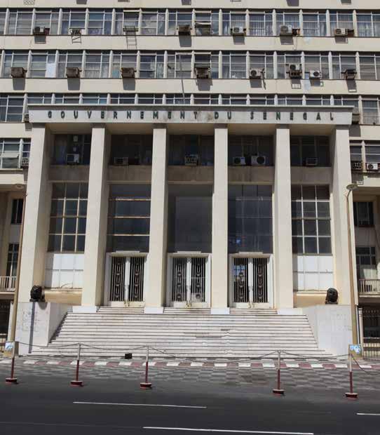 To some degree the austerity of this administrative block reinforces its position within the city. The building is oriented to the east, facing the Presidential palace compound and the port beyond. The original residential quarter of the colonial civil service, the cité jardin, extends behind along a series of diagonal, tree-lined avenues. The confinement of this district, flanked at one edge by the government building and the broad Avenue du President Senghor, presents this part of the city as a clear colonial urban project.
