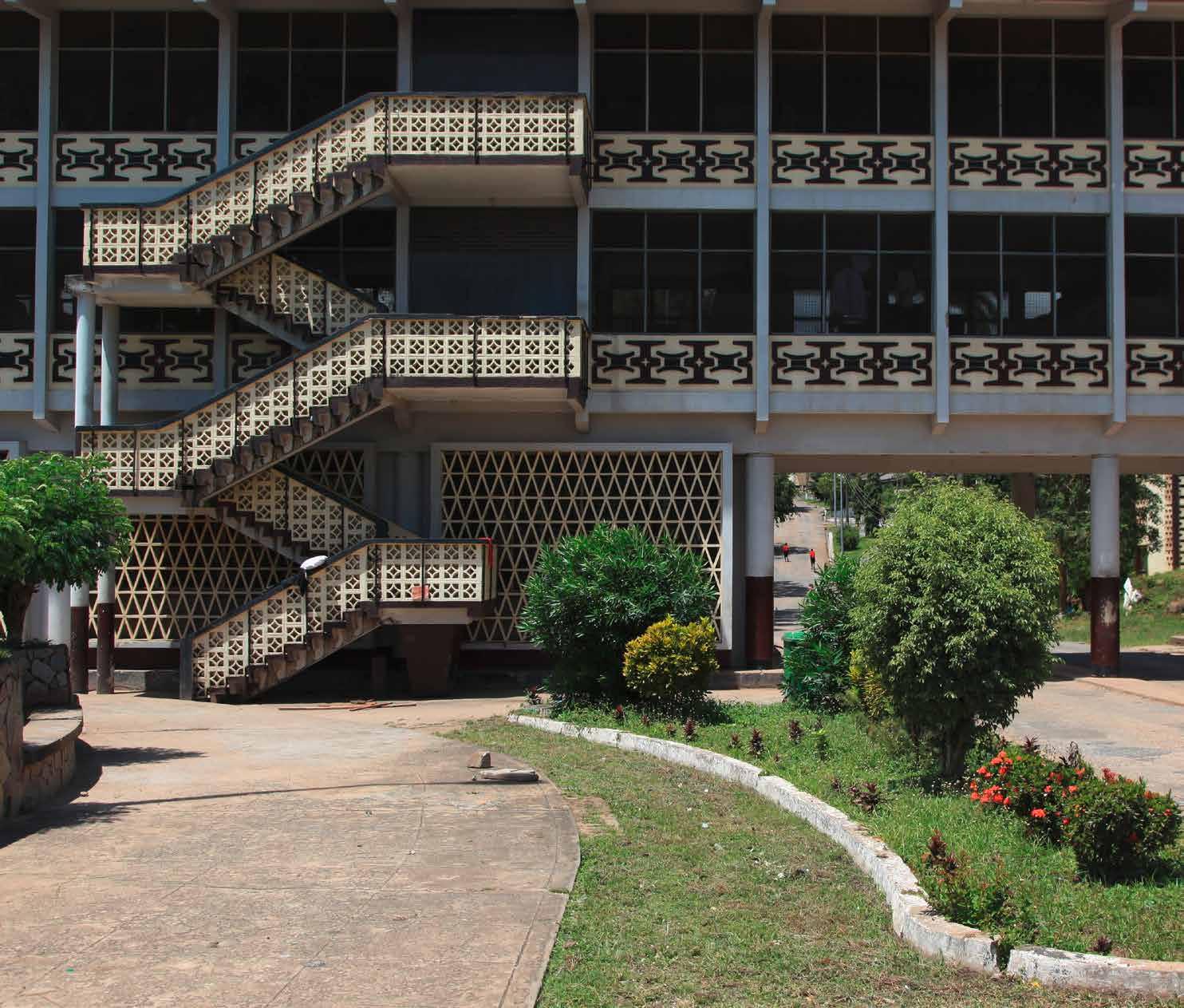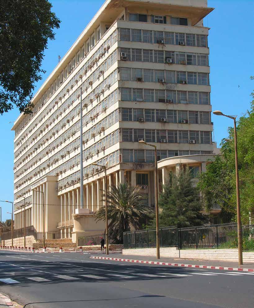 Located on the main thoroughfare that marks the eastern edge of the Plateau district of the city, this broad administrative building typifies the city’s transition from colonial grandeur to the stripped order of mid-century modernism. The project was never completed as planned and has been the focus of a continuing debate regarding the potential for recovering the environmentally sensitive design principles that had informed many structures of this late colonial period in West Africa.