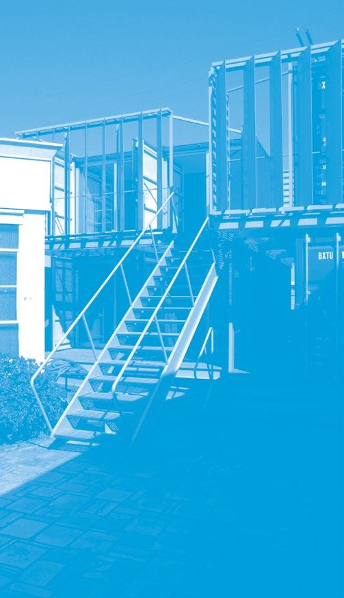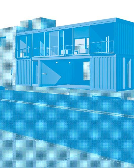 In an unprecedented departure from adhering to the strictest tectonic conventions of the containers (orthogonal organization, connections at corner fittings only), the containers have been arranged for maximum, disciplined