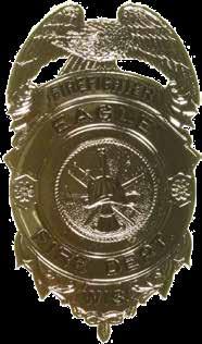 1 Eagle Creek Volunteer Fire Department badge, V.H. Blackinton & Co., Attleboro Falls, Massachusetts, n.d. 3 x 2¼ inches. Gold finish on metal.