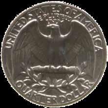 17 Quarter coin, reverse, 1964, John Flanagan, designer. ⅞ inch diameter. Silver and copper. This coin was first struck in 1932 to honor the bicentennial of the inauguration of the first president, George Washington, whose profile bust is on the obverse.