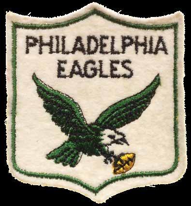 11 Philadelphia Eagles uniform patch, 1960s. 3⅛ x 2¾ inches. Wool. Founded in 1933, the Philadelphia Eagles were named in honor of the eagle logo of the New Deal National Industrial Recovery Act (see page 16), passed that year.