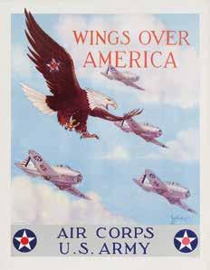 7 “Wings Over America,” Thomas B. Woodburn, artist, 1939. 38 x 25¼ inches. A US Army Air Corps poster by Texan artist Major Thomas B. Woodburn, who was chief of the air corps recruiting publicity bureau, and editor and art director of Recruiting News The planes are Seversky P-35s, which became obsolete before the manufacturer was able to complete delivery to the army in 1938.
