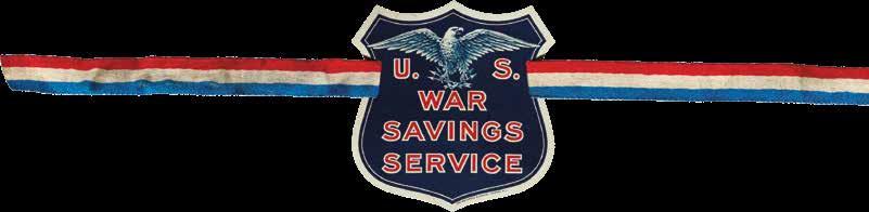 7 US War Savings Service armband, 1918. 2⅞ x 2¾ inches. Celluloid and ribbon.