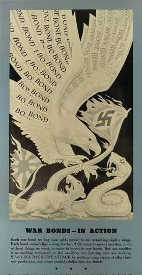 3 “War Bonds – In Action” poster, Boris Artzybasheff, artist. Wickwire Spencer Steel Company, New York, 1944. 42½ x 21½ inches. Ukrainian-born artist Boris Artzybasheff was famous for his surrealist style and depictions of anthropomorphic machines. His illustrations were on hundreds of magazine covers, notably Time and Life
