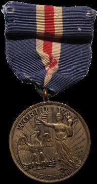 2 World War medal, 1917–18. 2¾ x 1½ inches. Metal and ribbon.