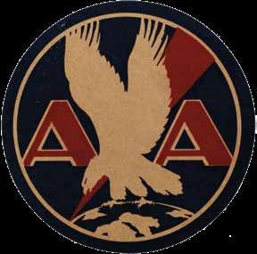 7 American Airlines sticker, Goodrich Murphy, designer, 1930s. 3 inches diameter. A label with the first American Airlines logo, created by AA divisional traffic manager Goodrich Murphy and used by the airline until 1945.