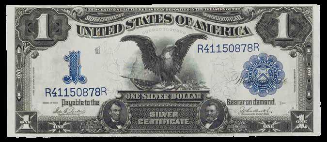 10 One-dollar silver certificate, series of 1899, obverse. 3⅛ x 7⅜ inches. Silver certificates could be exchanged for silver dollars and were in circulation until the mid-twentieth century. This certificate is called the Black Eagle.