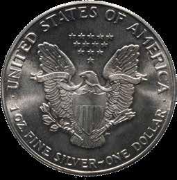 16 Silver dollar, reverse, 1986, Adolph A. Weinman and John Mercanti, designers. 1⅝ inches diameter. Called the American Silver Eagle, the coin contains “1 Oz. Fine Silver.” John Mercanti designed the eagle on the reverse, and Adolph A. Weinman’s Walking Liberty is on the obverse.