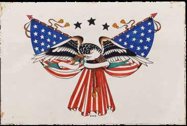 11 Eagle with two flags tattoo flash, Robert W. Cleveland, attributed artist, n.d. 12 x 18 inches. Watercolor. This design appears to be more recent than the others on this page.
