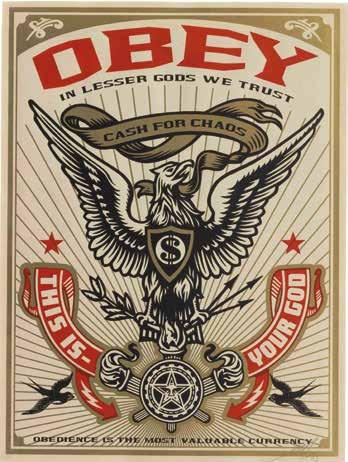 10 Lesser Gods Eagle. Shepard Fairey, 2003. 24 x 18 inches. Screen print, artist’s proof. Another print from the Obey series.
