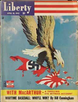 1 (opposite) American eagle destroying Nazi German and Japanese flags in midair, Ralph W. Iligan, artist, 1942. 26¾ x 22 inches. Oil on canvas. This work was used for a Liberty magazine cover (see this page, lower left). Iligan was a prolific illustrator and did many covers for Liberty, which was published from 1924 to 1951.