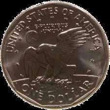 18 Susan B. Anthony dollar, reverse, 1999, Frank Gasparro, US Mint chief engraver, designer. ⅞ inch diameter. The coin is named after women’s rights activist Susan B. Anthony, the first woman (other than an allegorical one) on a US coin. The image shown here, on the reverse, of an eagle flying above the moon with Earth in the background, is based on the Apollo 11 mission insignia.