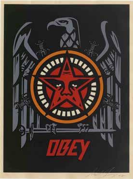 9 Slayer Eagle, Shepard Fairey, artist, 2002. 24 x 18 inches. Silkscreen. Artist Shepard Fairey’s most famous work is the Obama Hope poster created during Barack Obama’s 2008 presidential campaign. This print is one of the Obey series that came out of Fairey’s initial sticker campaign, and the eagle comes from the logo of heavy-metal band Slayer.