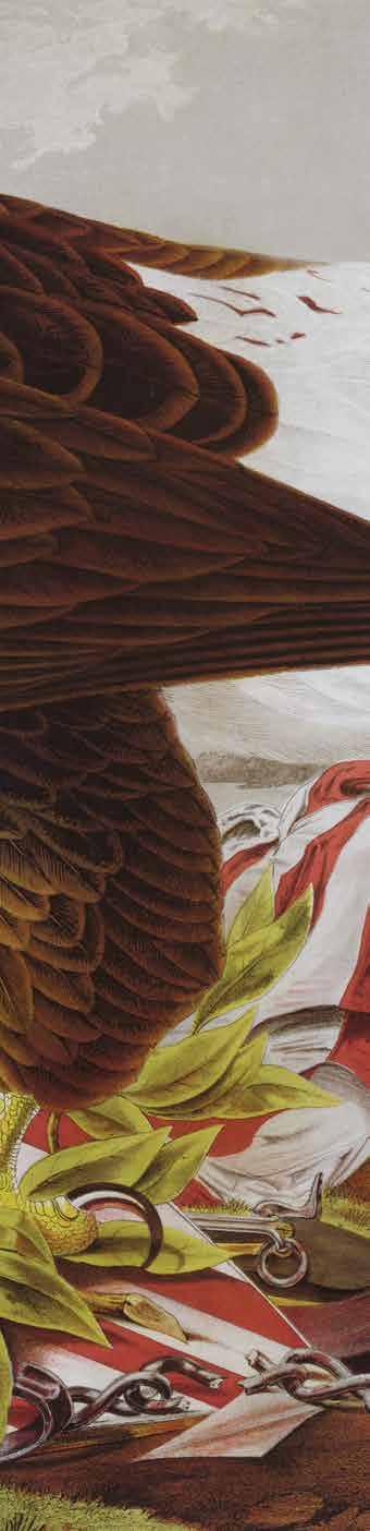 White-Headed Eagle with Union Shield and Constitution, detail, Julius Bien, printer, New York, 1861. 23⅞ x 36 inches. Color lithograph (digital print, 2006). Bien’s greatest work was the color-lithograph printing of 105 plates for the magnificent double-elephant folio of John James Audubon’s Birds of America
