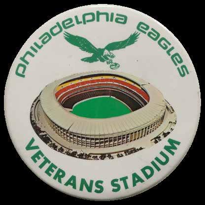 10 Philadelphia Eagles pinback button, Veterans Stadium, 1971. 6 inches diameter. Celluloid and metal.
