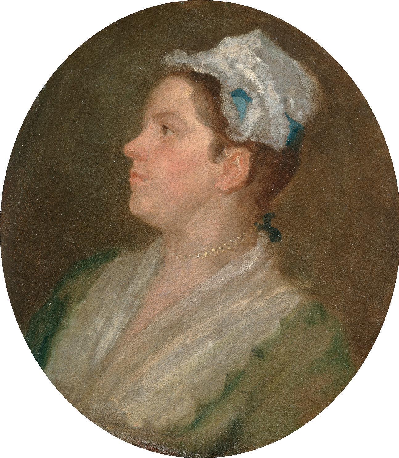 Opposite: Ann Hogarth, c. 1740. The artist’s two younger sisters, Mary and Ann, sold ready-made clothing from the Old Frock Shop in the City of London