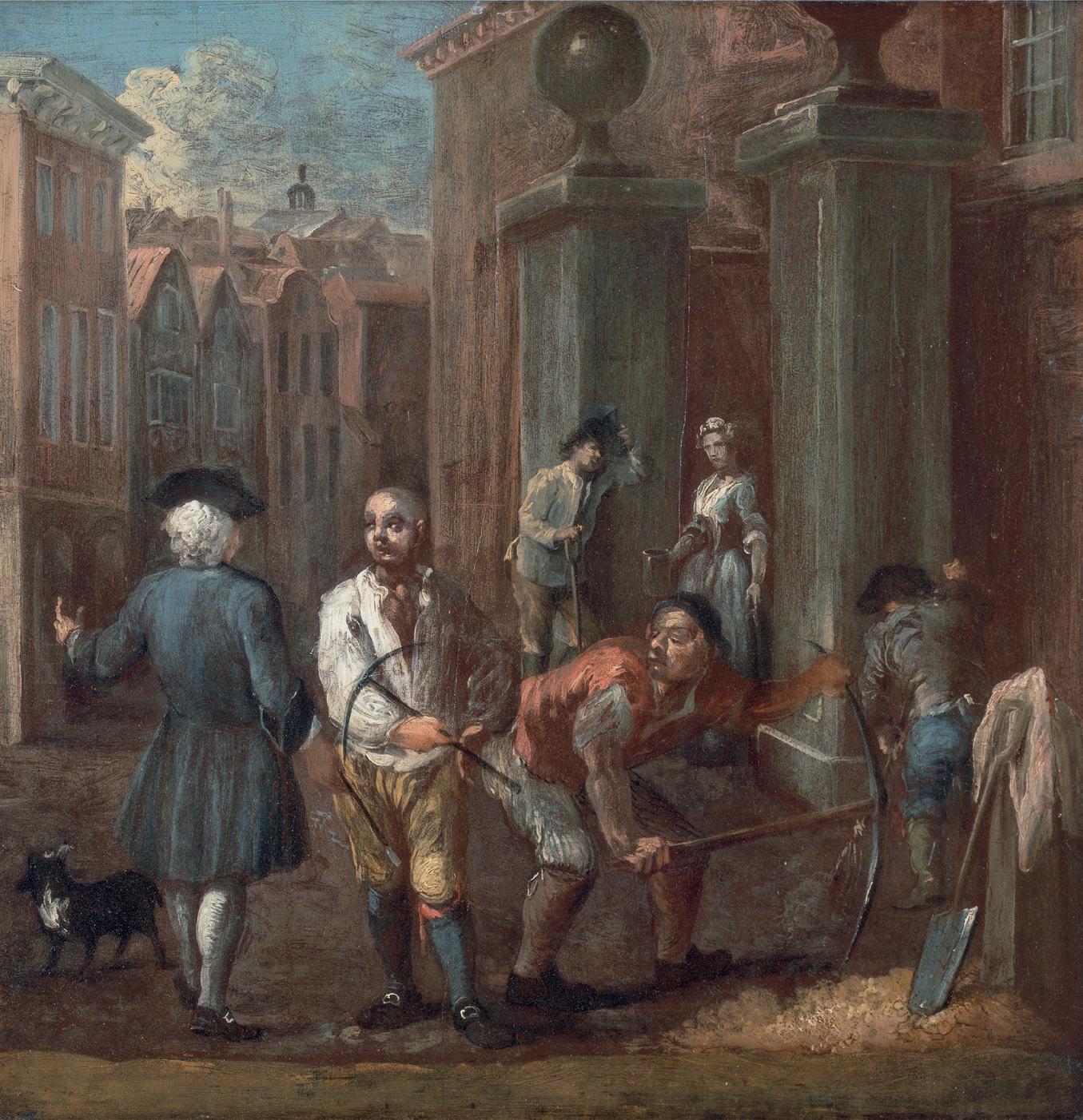 Opposite: Attributed to Hogarth, Sign for a Paviour, c. 1725. According to his pupil Philip Dawes, Hogarth considered the work of sign painters as ‘specimens of genius emanating from a school, which he used emphatically to observe, was truly English’.