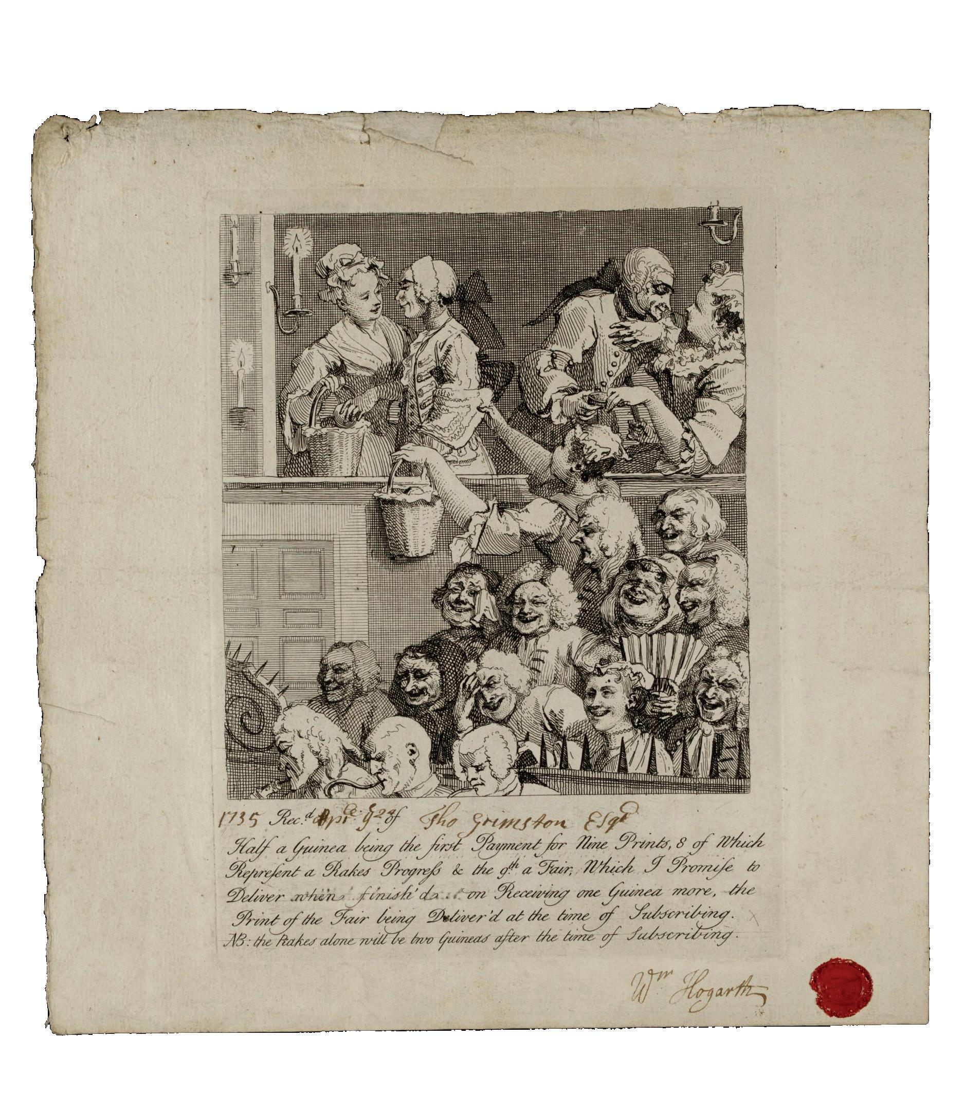 The Laughing Audience, 1733, used as a subscription ticket for the series of engravings, A Rake’s Progress, and for the print of Southwark Fair