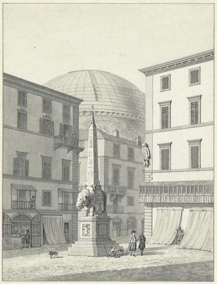 The view of the Piazza della Minerva from the Grand Hotel de la Minerve in 1790, much as Stendhal would see it twenty years later. S Maria sopra Minerva is out of the picture to the right