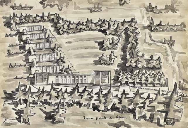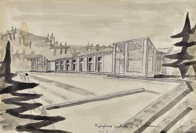 shapes and their brutalist interlocking, as well as the possibility of infinite combinations of the housing units, are also important elements in Ricci’s work. Another project that both architects were involved in was the extension of the cemetery at Montecatini Alto (near Pistoia in Tuscany) in 1967,40 although Savioli’s project was realized, while Ricci’s remained on paper. Savioli gave the main building a spatial arrangement like that of a vast underground church, to express a collective ritual of commemoration and the community’s reflection on the pain of loss.