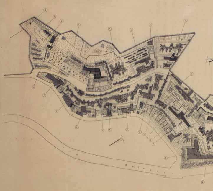 The theme of “City on the River”, was that of urban life on the Arno and the union of the two riverbanks, to be effected by creating gaps in the masonry embankments, so as to make room for new scenic views onto the water. The design for “Florence on the River” was based on a succession of solids and voids, consisting of buildings and open spaces, interspersed with pathways reconnecting the surviving monuments. The idea underlying these plans for the reconstruction of Florence was that of using the Arno as a linear element to be inhabited, and the backbone of a new urban layout from which future developments would branch off like its ribs. Ricci first began to investigate this conception in the projects he presented for the bridge reconstructions, and it would remain as a subliminal presence in his vision of urban planning in future years.