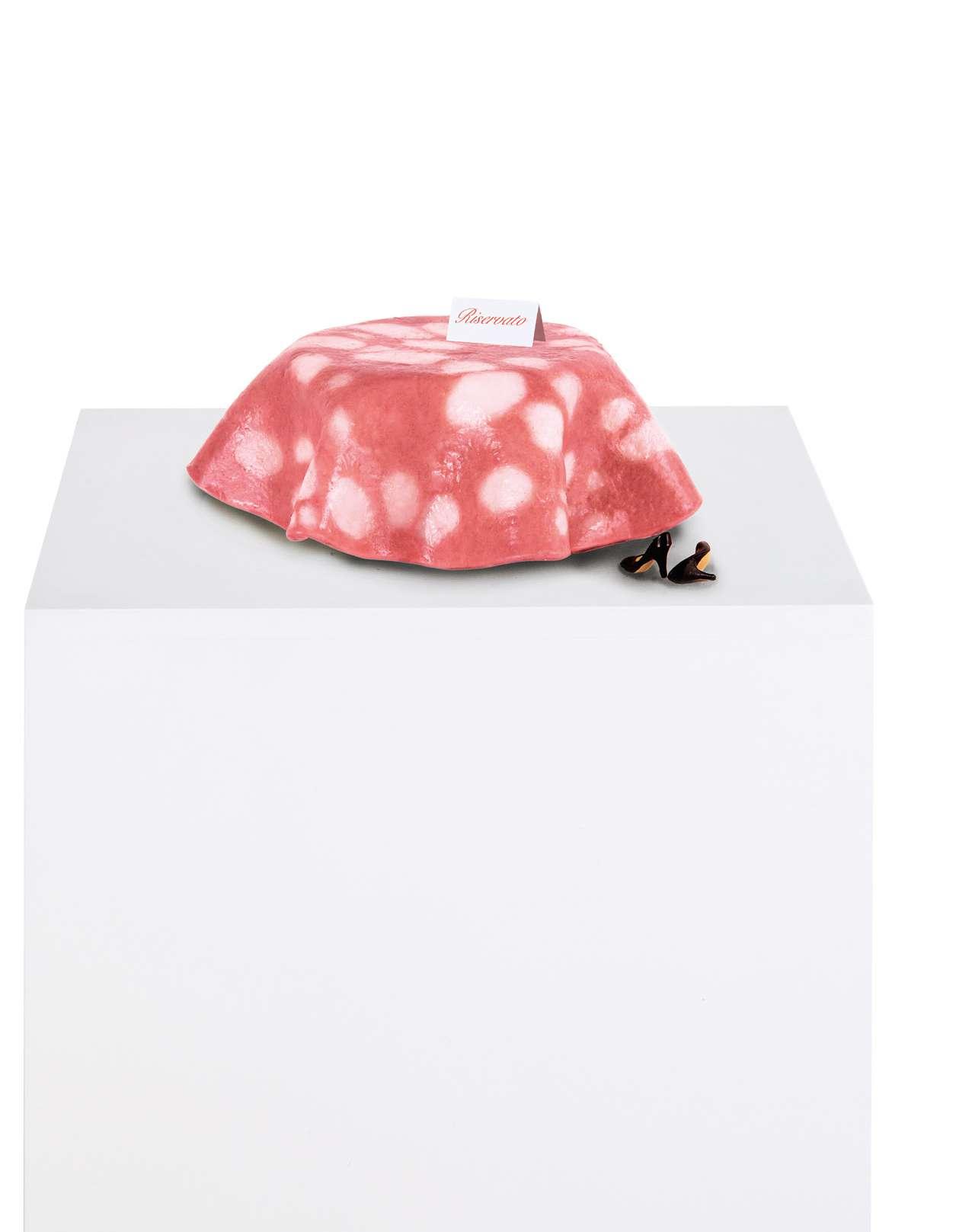 Il vermouth Punt e Mes ha una storia lunga e affascinante che ebbe inizio a Torino nel 1870, e vanta una sorta di mito attorno all’origine del nome. La frase stessa è un’espressione regionale, che si traduce come “punto e mezzo”, in questo caso utilizzata abitualmente da un agente di cambio che ordinava la sua solita dose di vermouth con in più mezza misura di amaro. L’immagine distillata di Testa è un gioco di parole visivo sul nome e un gioco di parole visivo anche all’interno dell’immagine creata. Conoscere l’origine dell’espressione e comprendere sia la lingua italiana sia il dialetto regionale aggiunge un’altra dimensione, ma Testa crea un’immagine universale, che risuona ben oltre la promozione di un marchio storico di bevande, ideando al tempo stesso un nuovo mito per il proprio cliente. La pubblicità gioca spesso su questa idea e aspira a quanto Testa ha ottenuto in questo caso specifico, ma sono pochi, se non nessuno, gli esempi che perfezionano questo processo a un livello simile, raggiungendo quello che in lingua inglese si potrebbe chiamare “bare essentials”. Il manifesto del Punt e Mes ha rappresentato una pietra miliare nella grafica e nella pubblicità italiana, ma faceva parte di una serie di lavori che Testa realizzò nel 1960 coinvolgendo pittura, scultura e serigrafia. La sfera e mezza è stata esplorata come un’immagine su tela, prima dipinta con pennellate sciolte, espressive ed essenziali in rosso e nero, e poi in due dipinti acrilici più compatti, uno in rosso, l’altro in nero, più vicini alla texture del manifesto pur presentando ancora tracce pittoriche. La versione nera ha l’alone vaporizzato dei manifesti Facis, sebbene leggermente meno pronunciato, ed echeggia qui in modo evidente l’allusione all’importanza di Seurat nei lavori da lui realizzati negli anni cinquanta. Più profonda, almeno ai miei occhi, è la prefigurazione del Minimalismo. La Pop Art si affermò saldamente nel 1960, e la formazione di Testa come pittore astratto era spesso evidente nella sua produzione creativa, ma i riferimenti al movimento emergente del tardo modernismo minimalista devono ancora essere pienamente riconosciuti e, senza esagerare, Testa sembra essere ben inserito nell’avanguardia. La scultura in fibra di vetro rossa, anch’essa realizzata nel 1960, non fa altro che amplificare questo impatto, ma mette anche in risalto la prolungata ossessione di Testa attraverso la sua pratica polimorfica: quella della sintesi.