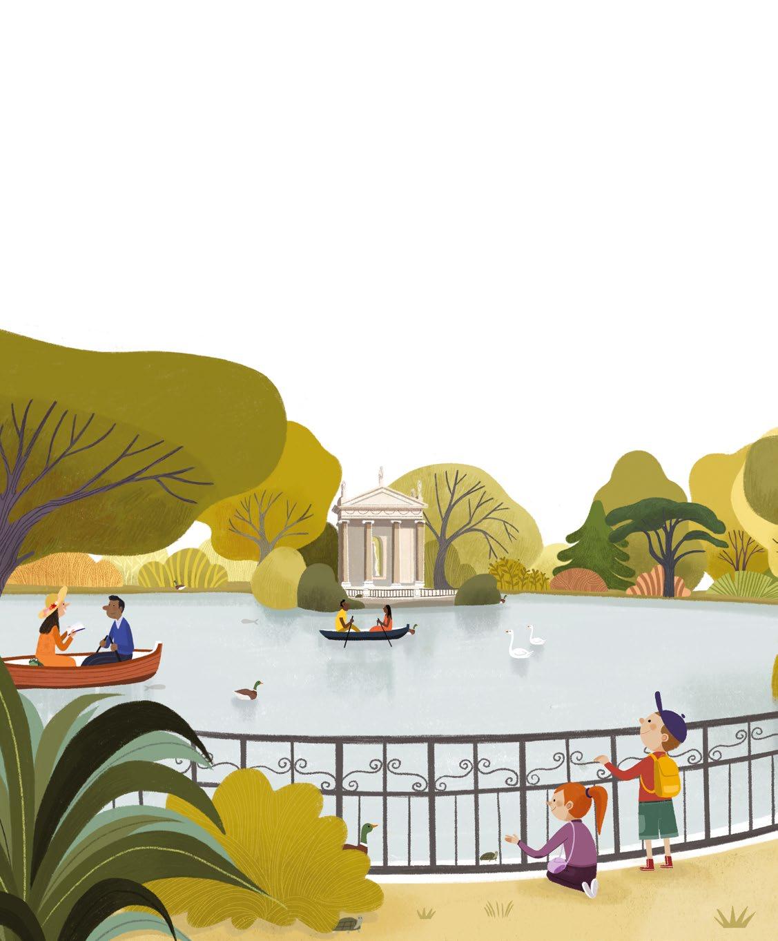 Our first day in Rome will start with a visit to a wonderful park in the middle of the city. After taking a fun boat ride, and seeing a “half-sunken ship,” we’ll go on a monster hunt, then head down into a mysterious underground tunnel covered in skeletons, and finally stop in Piazza di Trevi, where an important mission awaits us.