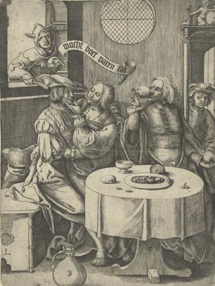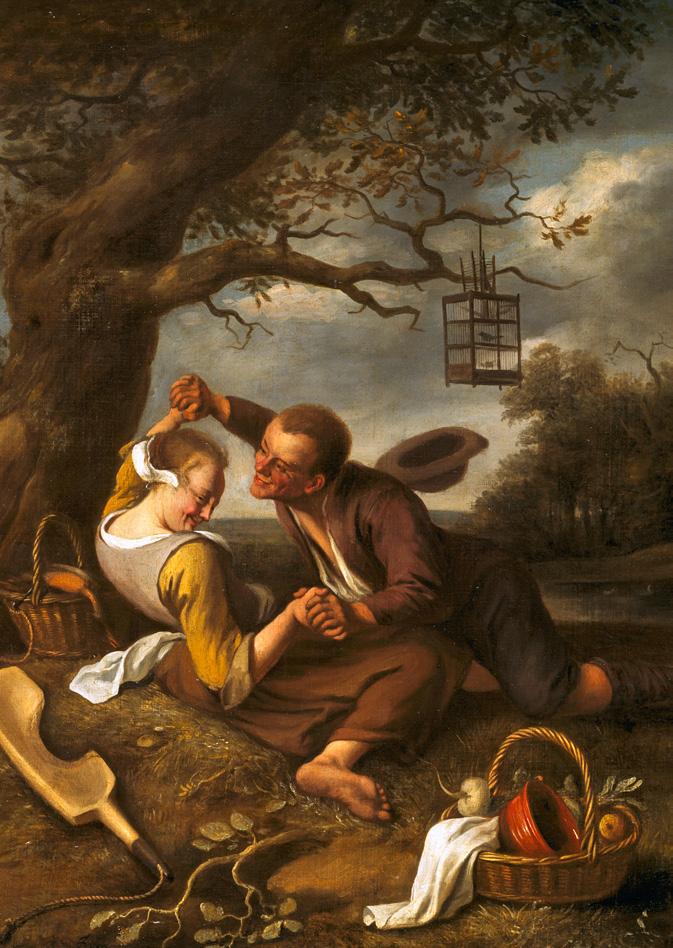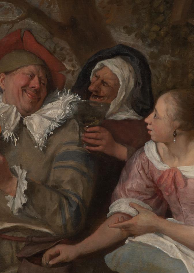 The foolish man who all too readily allows a beautiful woman to steal from him was a popular subject in seventeenthcentury genre painting. It fits seamlessly into Steen’s repertoire of humorous scenes with a much more serious underlying message. The work of his famous predecessor and fellow Leiden artist Lucas van Leyden will undoubtedly have been a big source of inspiration in this respect (fig. 24a).
