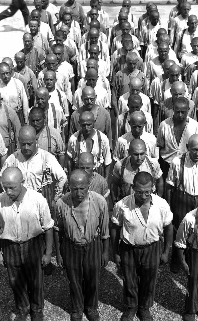 Prisoners during a roll call in Dachau concentration camp, 1938. Bundesarchiv, Berlin.