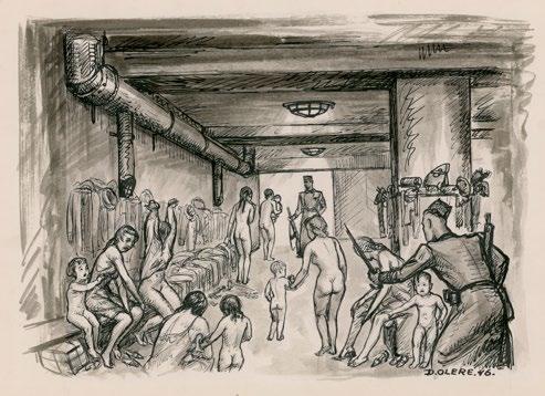 David Olère (1902–1985). Drawing of scene in undressing room of Crematorium 3, 1946. Watercolor and ink on paper. Marc Oler, France, and the Ghetto Fighters’ House Museum, Lohamei HaGeta’ot, Israel.