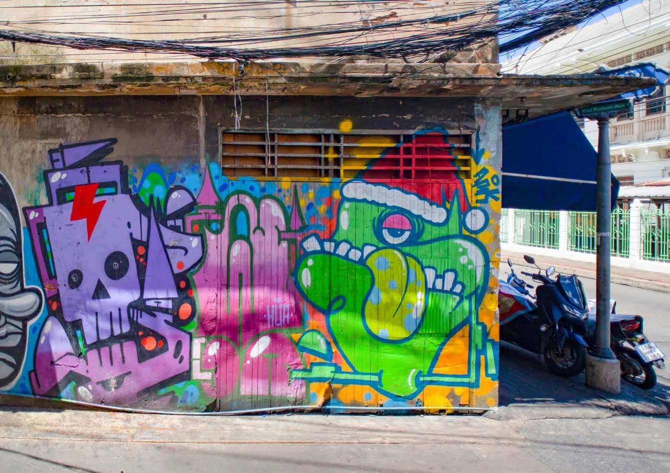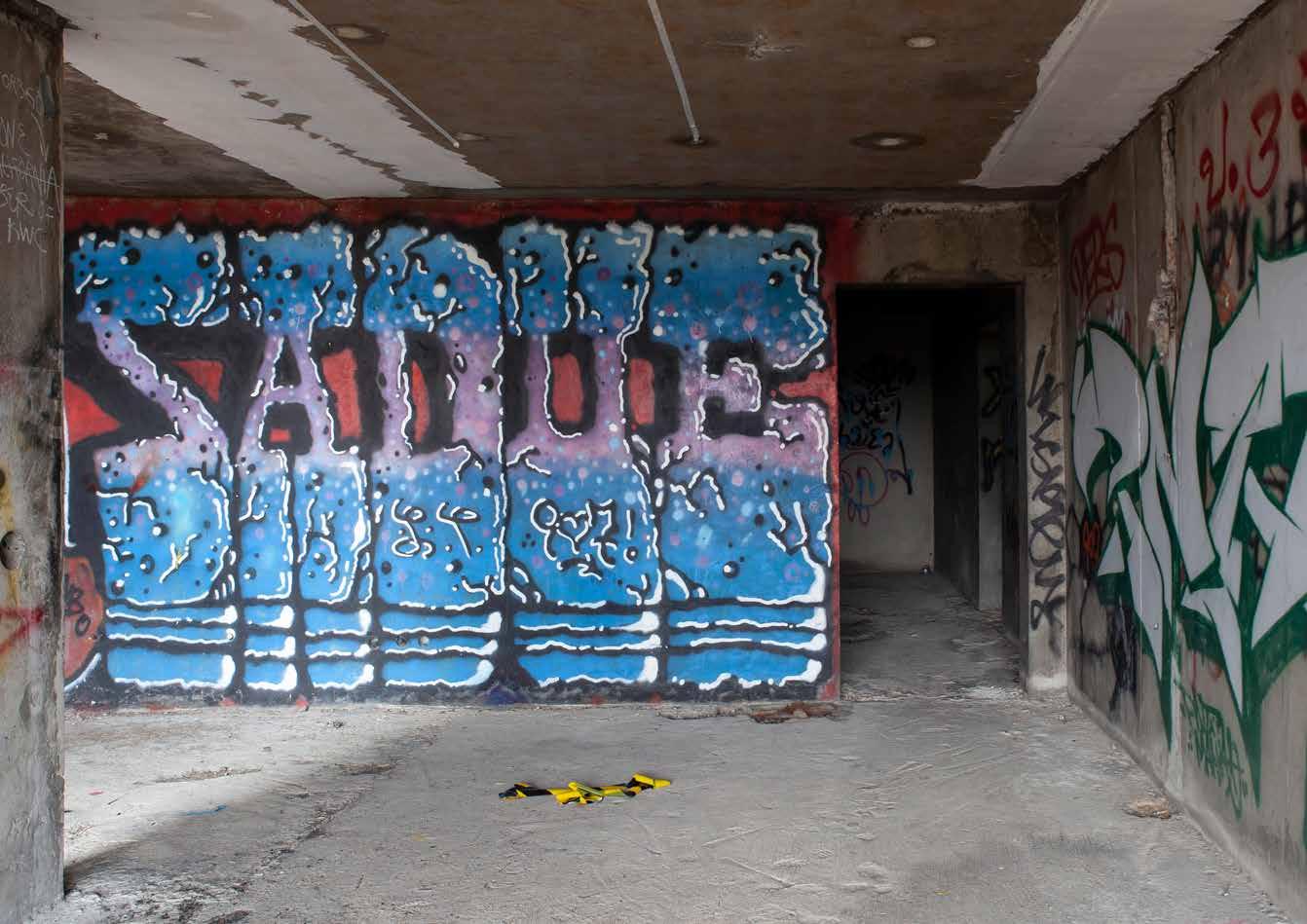 Dejected, I pushed further up the line, to unlit areas of track beyond the excavator. Declarations of despair and indignation emerged from the darkness as my eyes adjusted – contorted figures in lurid hues, creeping, warped faces and fine, elegant lines. Relieved, I saw there were still many columns adorned with art in the area. Some of the pieces were new. Artists were still working here – just ahead of the diesel-driven destruction that was rolling up the line by daylight. There was still a chance to record this place and its street art before it was lost.