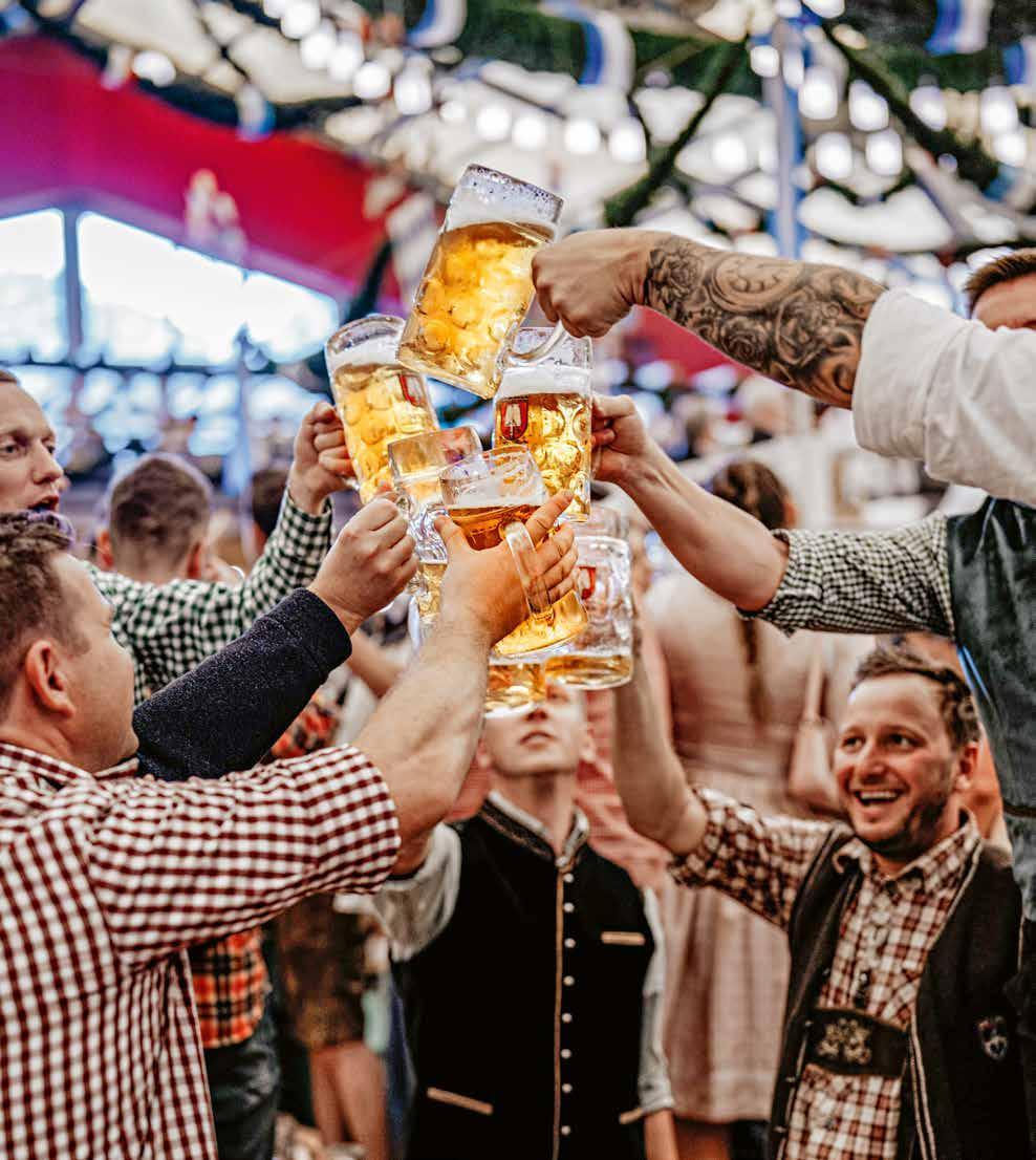 The people of Munich, however, have long since accepted their global reputation as residents of the city of beer. Most of them are even proud of it, and they embrace their personal brand of beer as if it were a religious belief. When they go to Oktoberfest, they have short nicknames for their favorite tent and go to “den Ochsen” or “zum Löwen.” When taking their first sip of the new one, many of them also claim they can remember exactly what the Wiesnmass tasted like the previous year, and then use their expertise to make a comparison. But one thing is certain, it was always cheaper last year. This is another of the rituals surrounding the Wiesn: People wait with bated breath for the announcement of the beer price, which takes place sometime in early summer. Then at least half of the people in Munich shake their heads in disapproval at the increase in the price of beer in just one year, finding this quite outrageous in general. Prices are, of course, also rising in beer gardens and in normal life, but it is the Wiesn and not normal life. Among the six to seven million visitors to the Wiesn every year, it is claimed that nobody has ever gone without another beer just because it was less expensive the year before.