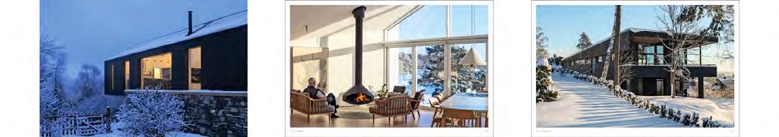 Best design practices illustrated with examples for warm and cozy houses and interiors, how to design for wintery conditions, including large snow loads
