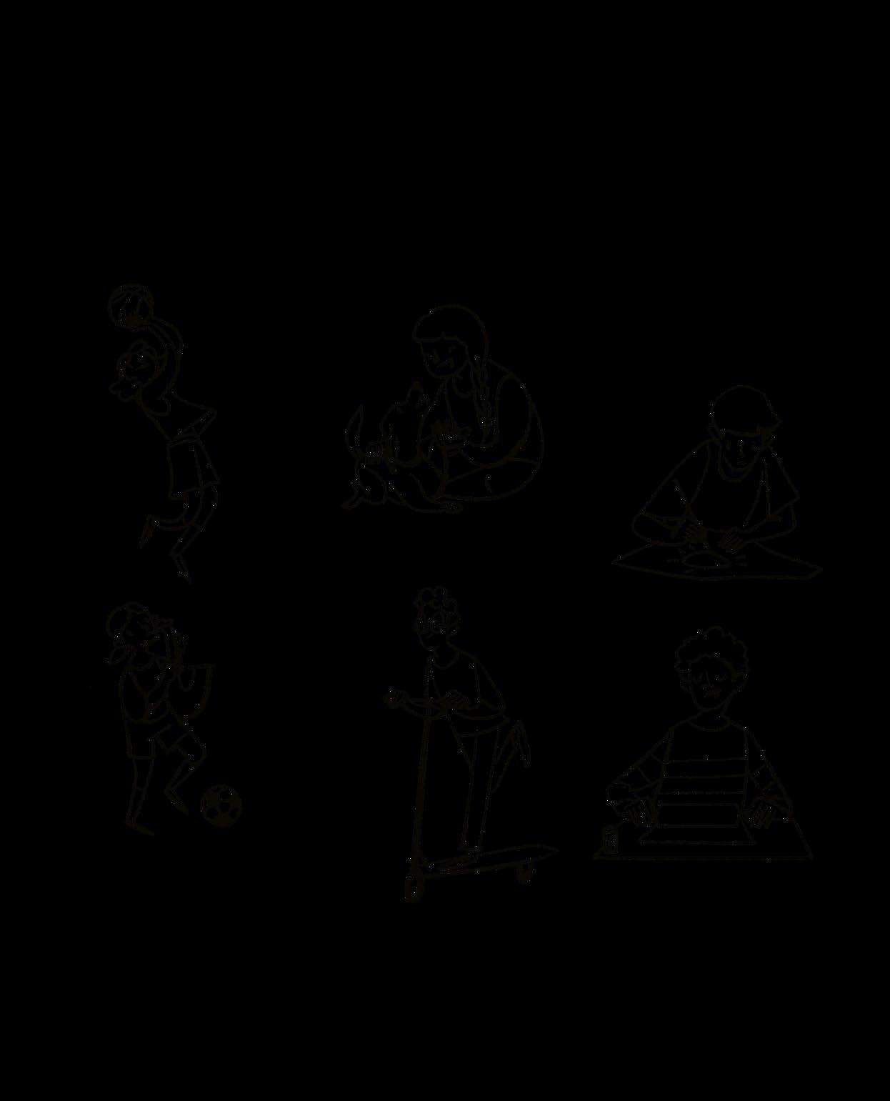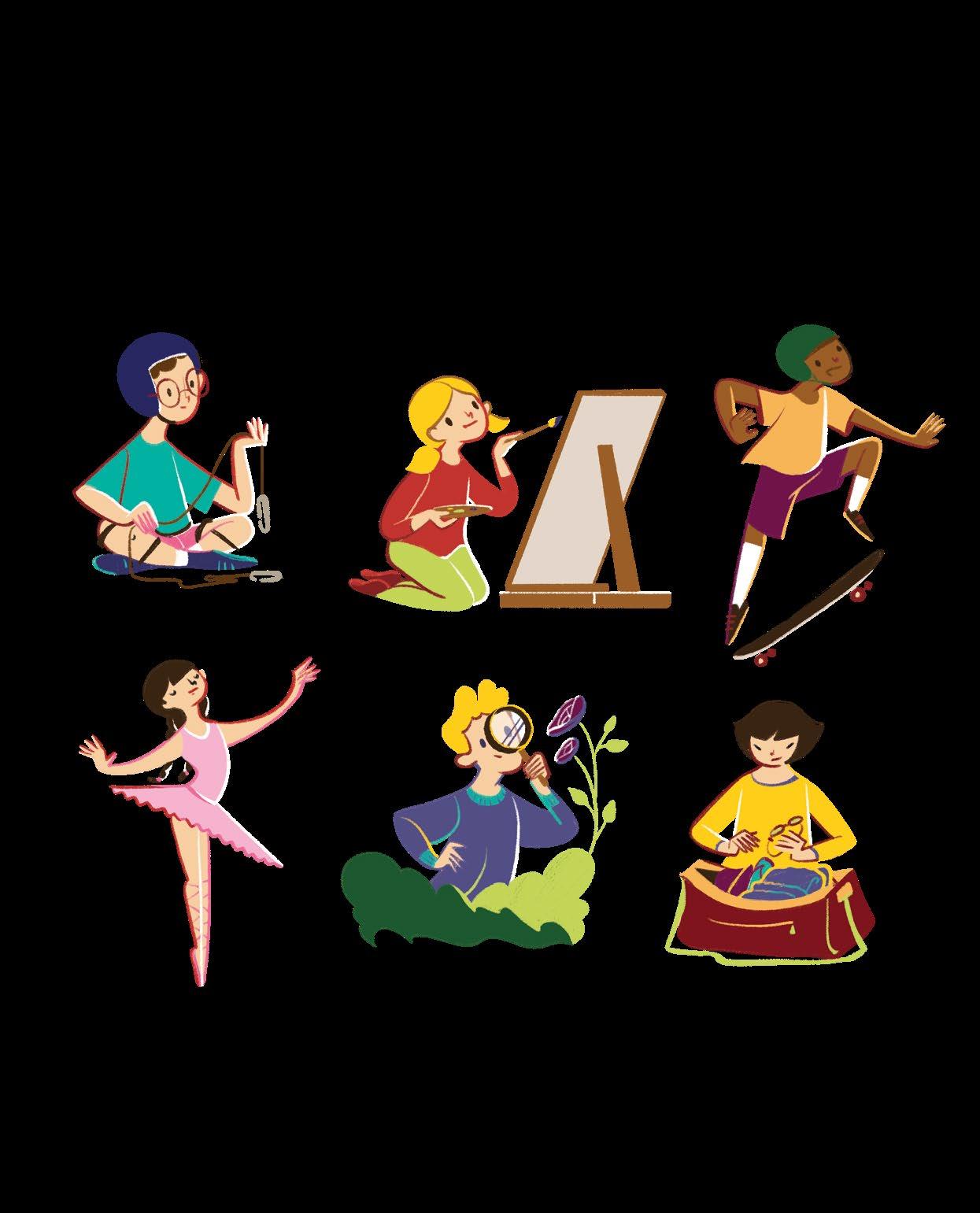 We are also all different because we like different things! I love cooking, Ben loves music, and our friends all have different interests too. LOOK AT THEM and find out what they are passionate about, then CONNECT the drawing to the corresponding word.