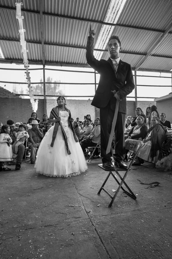 de una extraña comitiva hecha de diablos, personajes de danzas, toritos y katarakuas que obligan a preguntarse: “¿quiénes son todos estos?”. Pero sólo son elementos rituales que pertenecen a otras fiestas y que aparecen alegremente en las bodas. Por tanto, es inútil intentar descifrar los elementos festivos sin observar el resto de los acontecimientos rituales e identificar así el origen de cada uno. Si en las bodas hay elementos de otras fiestas, ¿habrá fiestas que contengan pedazos de bodas? Para culminar el ejemplo, la respuesta es afirmativa: en algunas fiestas ocurren bodas de broma o de juego, en la que se casan “de mentiritas”, niños, tacuchis o solterones.