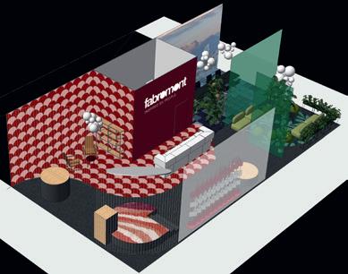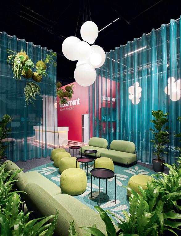 Size 153 m 2 | Exhibitor Fabromont AG, Schmitten | Photos Christoph Adler Fotografie, Munich | Archi tecture / Design / Scenography / Exhibition Design Atelier Seitz GmbH, Niederneuching | Others Folienservice Neuz, Oberhaching (Foil Coating); Planter ‘ s Punch GmbH, Heimstetten (Botanical Installations)